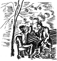 Сяджу я аднойчы ў салдацкай чайной. Бачу — заходзяць чацвёра салдат. Падстрыжаныя, на выгляд — маладыя. Заказалі па пачцы пячэння і па шклянцы чаю. Адзін мажны такі і з выгляду сімпатычны кажа: — Дык што, корашы, значыцца, у адным разліку служыць будзем?.. Дзе наша не прападала! Што ж, давайце знаёміцца. Сашык я... з Адэсы-мамы. Вось, думаю, “сімпатычны”! І адразу мне гэты Сашык стаў не па душы: вельмі ўжо бесцырымонны. Тыя трое таксама, бачу, змоўклі спачатку, але потым назвалі сябе. Сеня з Варонежа — шчуплы такі хлапчук у акулярах. Антанас з Вільнюса. І Хамід з Ташкенцкай вобласці. А гэты з Адэсы пакеплівае: — Служыць, братва, умець трэба. Па мне дык усё роўна: ці малаціць, ці абедаць. Абедаць яшчэ і лепш. Ну, а калі ў ракетчыках мы, — вядома, малаціць не прымусяць. — Вучыцца будзем, тэхніка ж складаная, — сказаў Сеня. — Вучыцца! — перадражніў яго Сашык. — Відаць, ты ўсё жыццё вучыўся, ачкарык. — Правільна, — згадзіўся Сеня. — Пасля школы разметчыкам працаваў на заводзе і без адрыву два курсы вячэрняга філалагічнага паспеў закончыць. — Два курсы, — пагардліва кіўнуў Сашык. — Чым чалавек вучоней, тым дурней. Філасофію вывучаў? — Вывучаў... — Тады ведаць павінен, што час незваротны. Дзень прайшоў — і ніякай сілай яго назад не вернеш. От і дзейнічай па формуле: “Салдат спіць — служба ідзе”. Дзень да вечара — любата! — Паслухай, ты што! — гнеўна бліснуў вачыма Хамід. — Чаго псіхаваць? — прымірэнча падняў руку Сашык. — Не спі, калі не хочаш. Бяры анучу, ідзі і працірай у гэтай самай ракеты нос ці крылы... — Не крылы, а стабілізатар, і не нос, а баявую часць, — спакойна паправіў Антанас. — Бач, ён усё ведае. Архімед! Спіноза! — выгукнуў Сашык. — Таксама, відаць, вучоны?.. — Два курсы завочнага політэхнічнага, — не без гонару пагадзіўся Антанас. — Ай-яй-яй! — кіўнуў галавой Сашык. — У мяне ў маленстве сябрук быў. У шостым класе задачкі пра басейн рашаў. Ведаеце, у адну трубу ўліваецца, а з другой выліваецца? Пакуль рашаў — на два кілаграмы пахудзеў. — Па ўсім відаць, што вось ты, ва ўсялякім выпадку, такіх задач не рашаў, — падкалоў Сеня. — Правільна, — згадзіўся Сашык. — А навошта? Пра дзве трубы рошыш — трэцюю дабавяць. А я — зноў ламі галаву. Ха! На пятым годзе адукацыю закончыў. Затое ў мяне шэрага мазгавога рэчыва невычэрпны запас. — Шэрага запасу, — усміхнуўся Антанас. — Што ж ты да прызыву рабіў? — Як што? Грузчыкам у порце ўкалваў. От была жытуха! Ляжыш сабе на сонейку і цыгарэту смокчаш. Глядзіш, пасудзіна прышвартавалася. Ну, мы тут як тут. Бегаем па трапу сюды-туды, туды-сюды. Дзевяць мяшкоў у трум, дзесяты — налева... — Кралі, значыцца, — агідліва зморшчыўся Хамід. Сашык на момант стхарыўся. — Нічога не скажаш, падабралі нам таварыша. А я думаў, што ў нашым разліку ўсе хлопцы як на падбор будуць, — засмучона прагаварыў Сеня. — Нам бы з нашай падрыхтоўкай у выдатніках толькі і хадзіць, а тут... — А мне казаў ваенком: “Хамід! Ты ў ракетчыкі ідзеш. Ты за Радзіму стаяць будзеш. Ночы не спі, будзь напагатове!..” А тут яшчэ гэты сімулянт і зладзюга... Сашык замест таго, каб пакрыўдзіцца, раптам зарагатаў: — Ха-ха! Ну, крытыкуйце, крытыкуйце. Не адмаўляю, у мяне шмат недахопаў. Толькі я не сказаў вам пра самае галоўнае. Усе здзіўлена паглядзелі на яго. — Я люблю мастацкую самадзейнасць. Я марыў і мару сыграць ролю. І вось, прабачце мне, рашыў паказацца перад вамі такім аболтуса